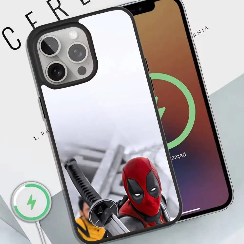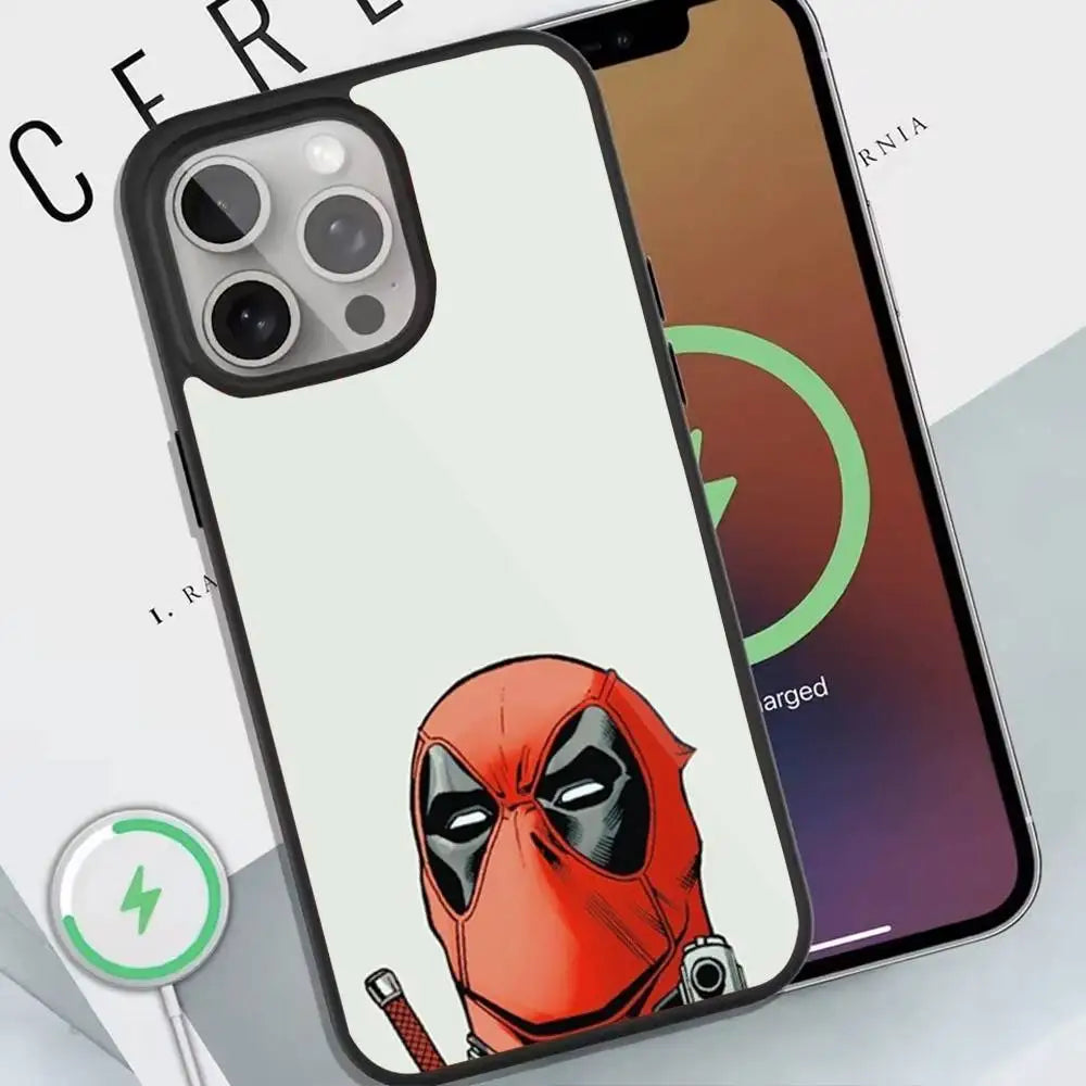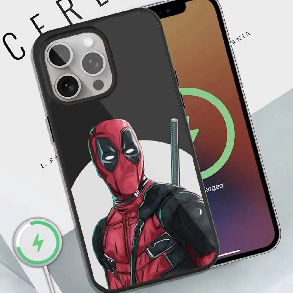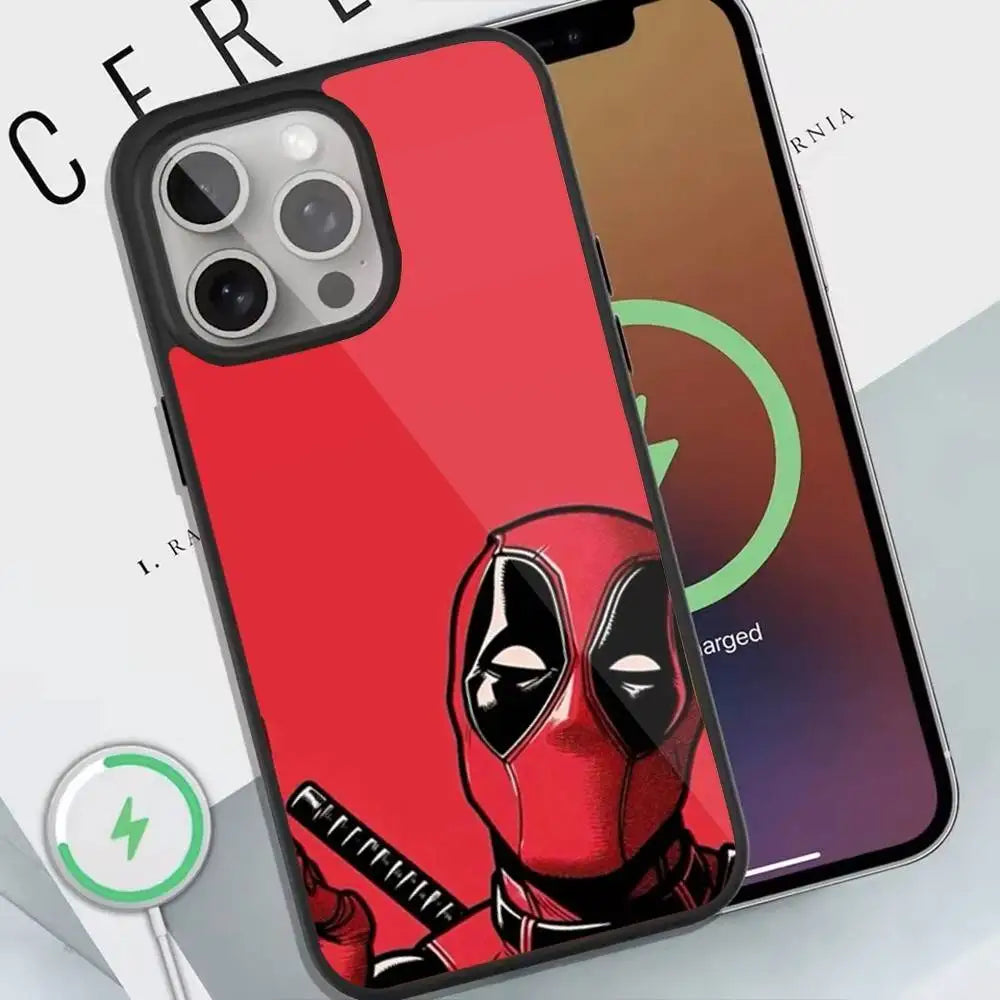 Deadpool Red Phone Case For Magnetic Wireless Charge Cover For Iphone